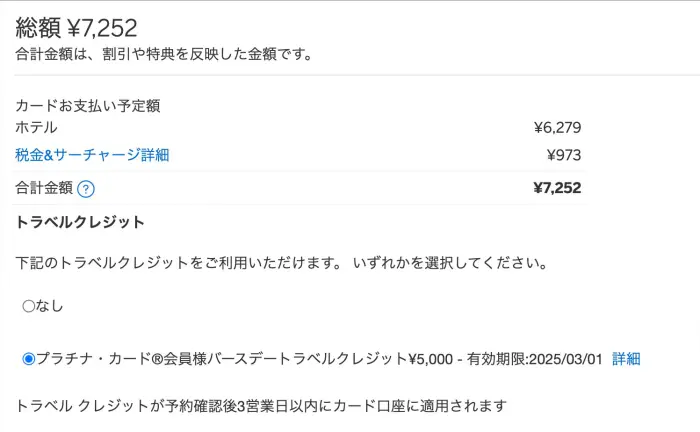 誕生日には5,000円分のトラベルクレジットが届きます。