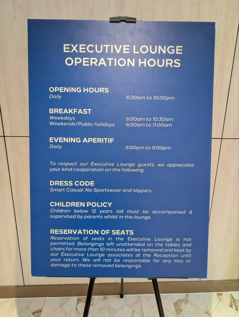 エグゼクティブラウンジの案内。朝ごはんからカクテルタイム(イブニングアペリティフ)まで。