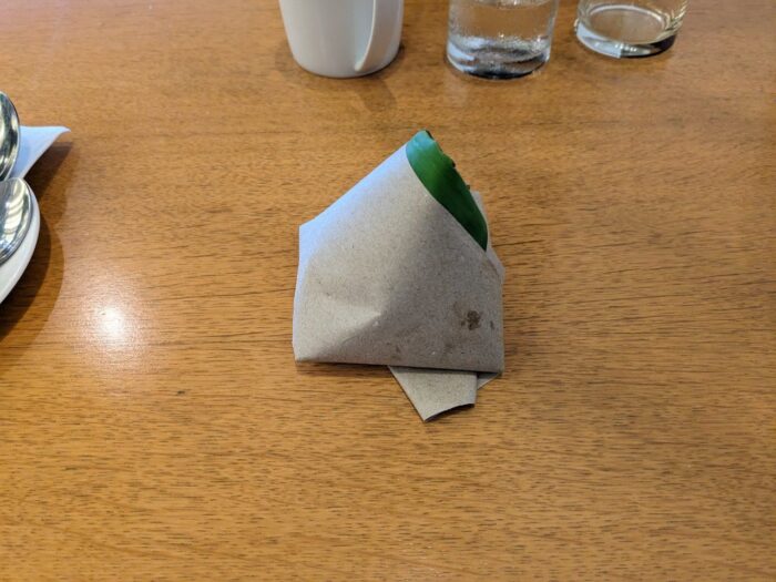 包みを開けてみると、ナシレマです。地元ローカル店で作ってくれるような包装が旅行だと嬉しいですよね。