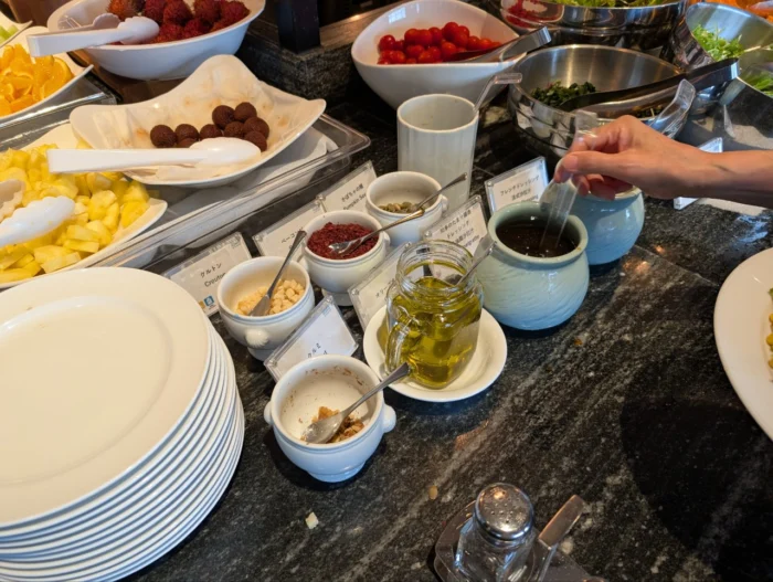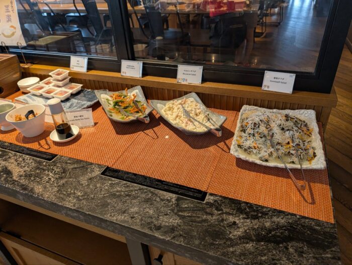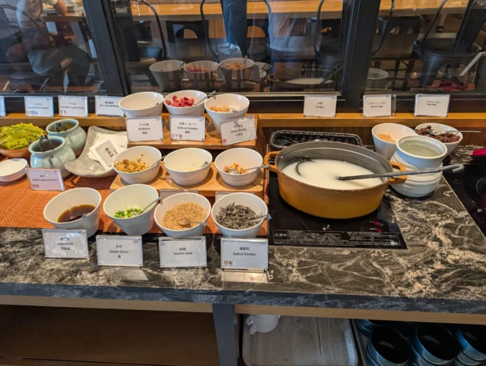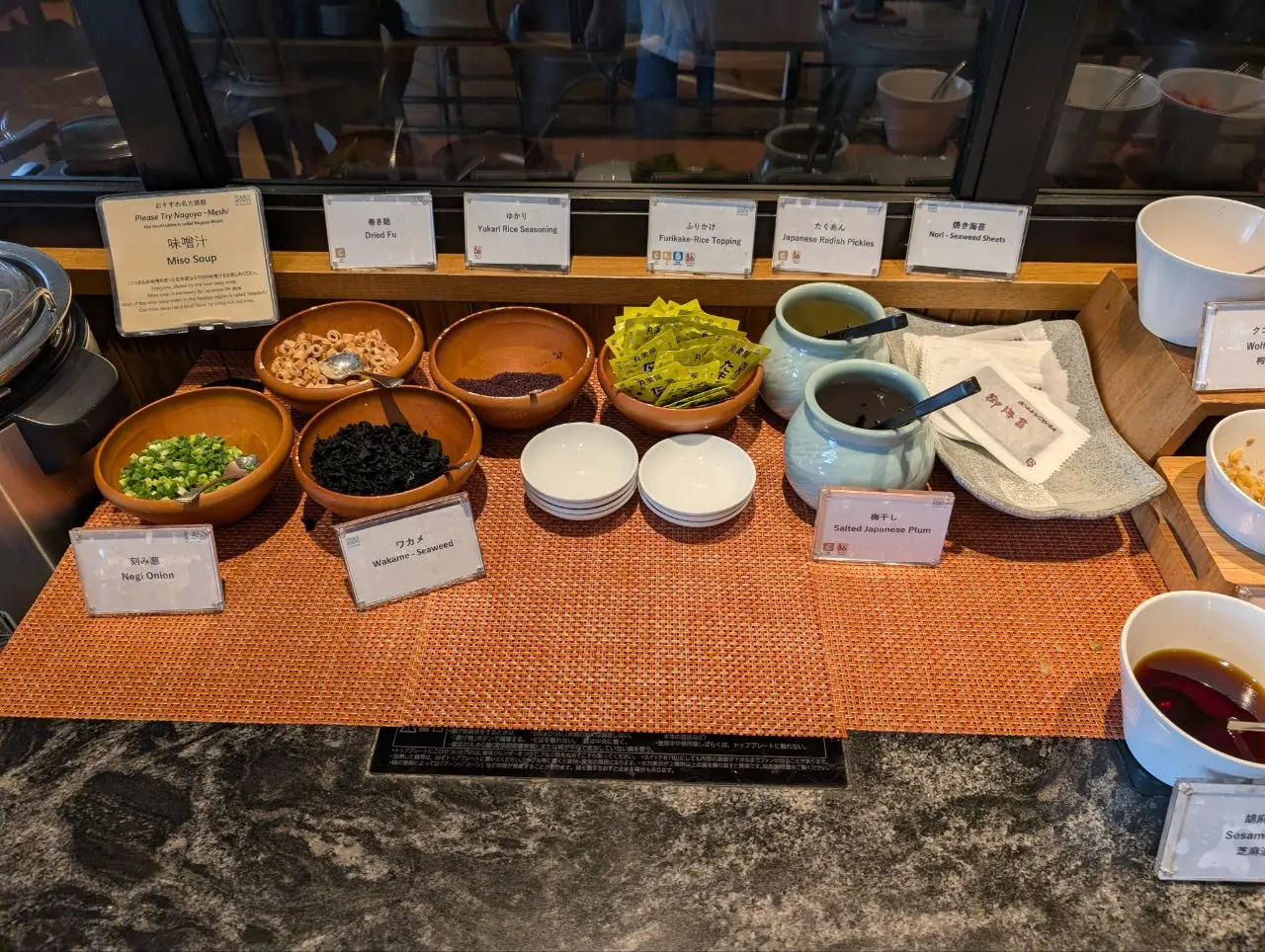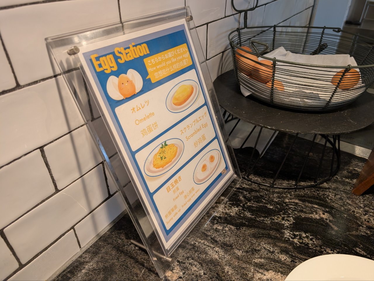 先ほどのエッグステーションで目玉焼きを作っていただけば日本的朝食の出来上がりです。