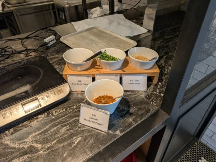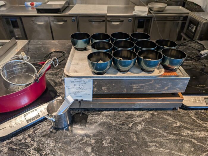 きしめんは自分で湯がいてお好みの薬味をどうぞ。