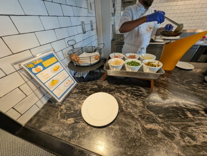 ライブキッチンではタマゴ料理をその場で調理しています。