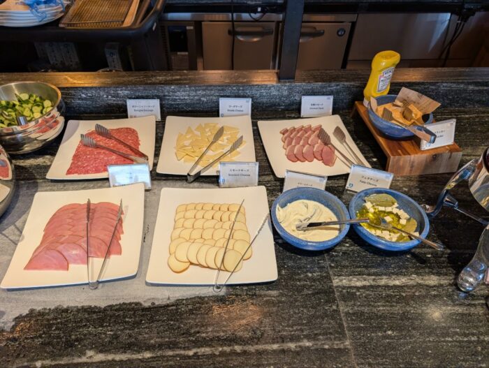 ボローニャソーセージ・ハム・ゴーダチーズ・スモークチーズ・クリームチーズ・フェタチーズ・合鴨スモーク・クラッカー。