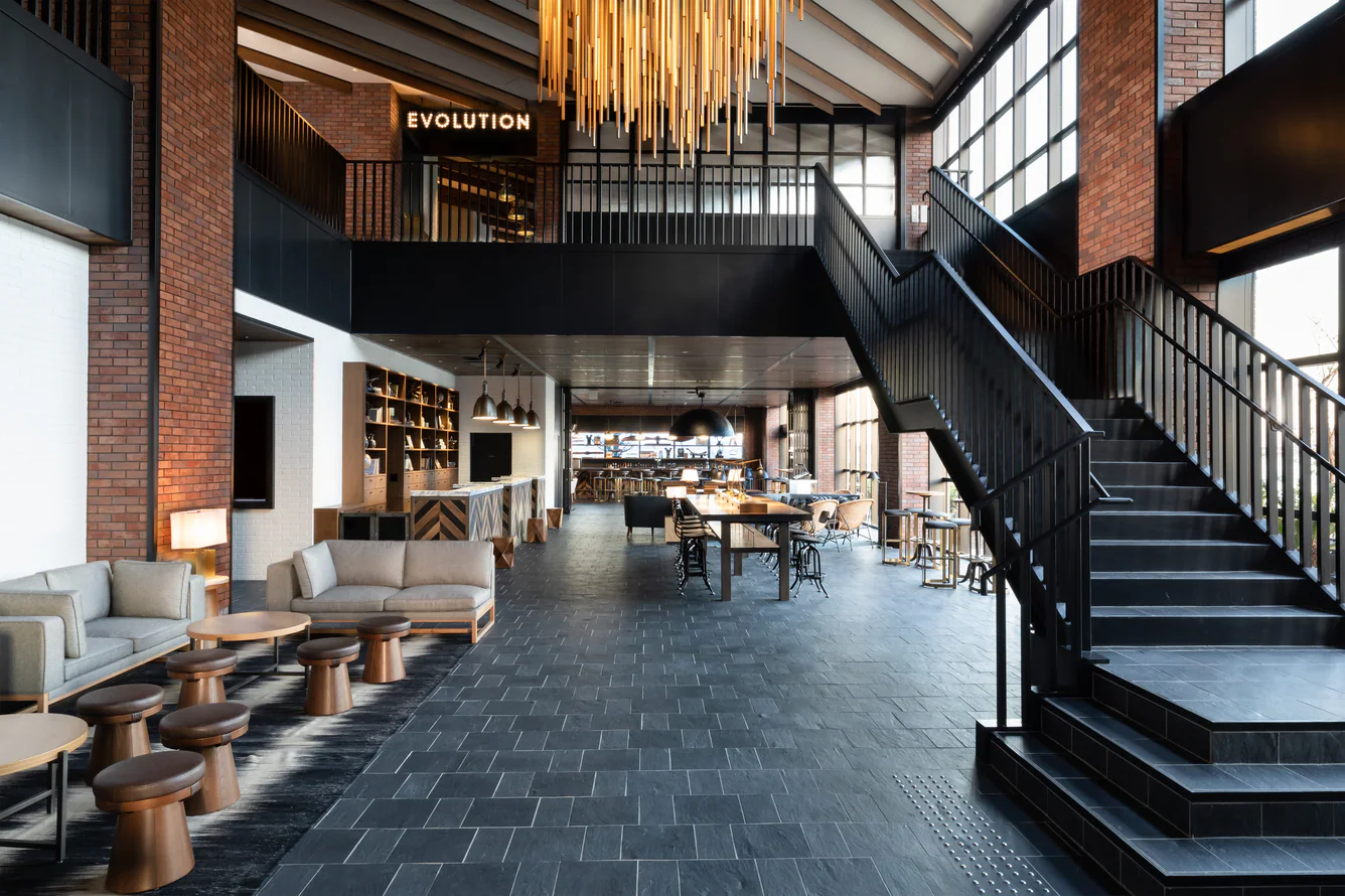 ホテル公式写真引用。ホテルに入って直ぐこの階段があります。ちょうどこの写真のように見えますので写真右手の階段を上がったところがレストランエボリューションです。