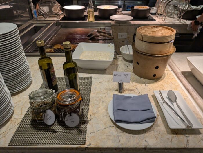 JWカフェでの朝食は、公式サイトによると、豊富なメニューが特徴です。朝食時間は明確に記載されていませんが、6:00 AMから10:00 PMのレストラン営業時間内で提供されます。私はヌードルバーで麺料理を楽しみ、食後のデザートにはアイスをいただきました。