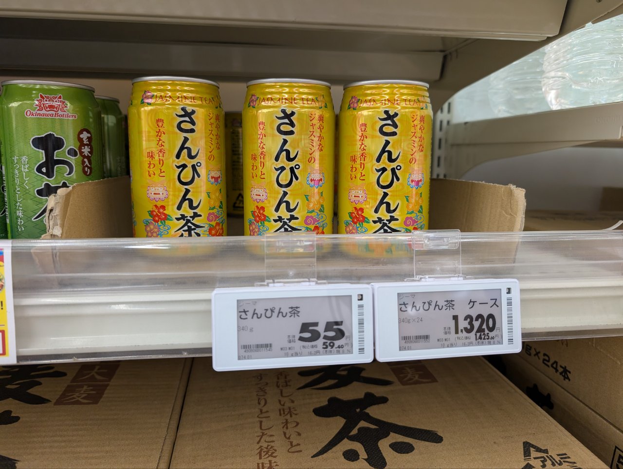 地元のメーカーらしき350ミリ缶のさんぴん茶は55円で売っていました。セールだともっと安いかも。